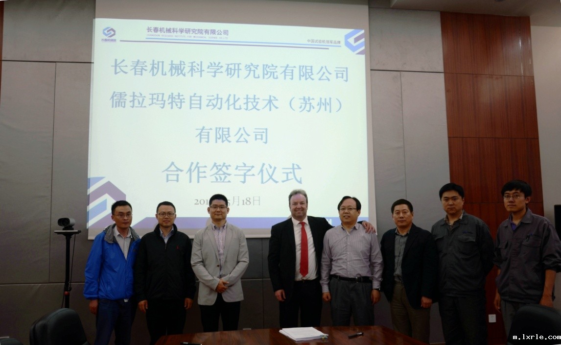 2015年5月18日,儒拉玛特自动化技术(苏州)有限公司白世泰总经理一行四人到访长春,长春机械院马敬春总经理热情的接待了来访的客人。双方就合资成立新公司一事进行座谈,并达成一致意见,共同签署了《合作协议书》。